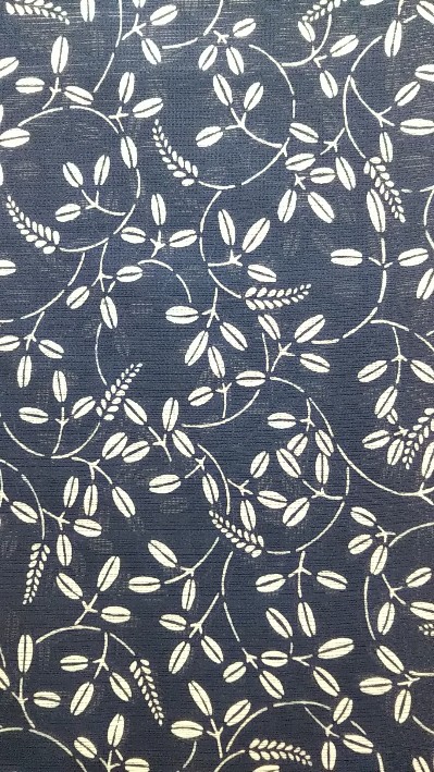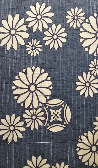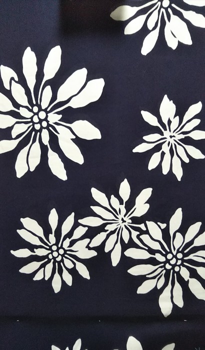 コーマ地に濃紺色で染められ、大小の花の柄が白抜きでキリッと爽やかです。