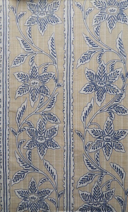 白地に青色の唐草、黄色の唐花の柄がスッキリとしてます。