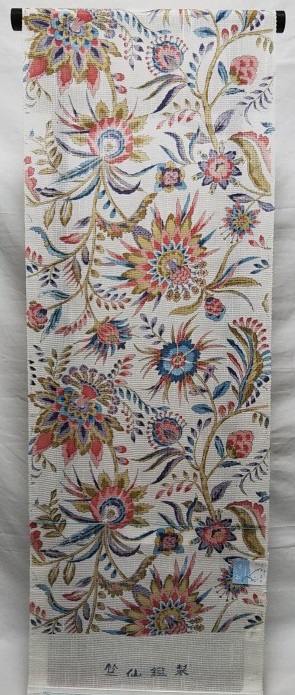 生成りの地色に柄は横段で区切られ、茶屋辻紋様。