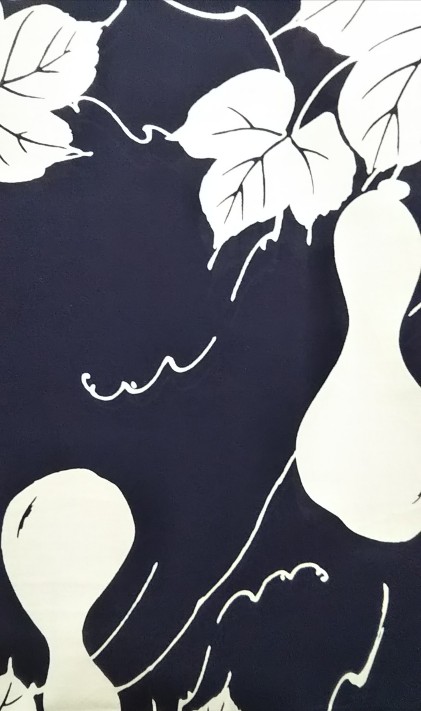 紬地にカラスウリの柄が染められた素敵な一枚です。