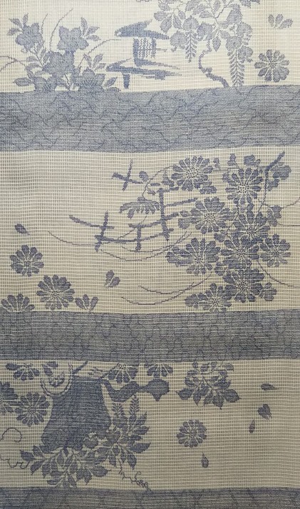 絹紅梅は竺仙のみの生地で、綿を格子状に織り、地の部分に絹糸を織り込んで清涼感ある透け感を出しております。