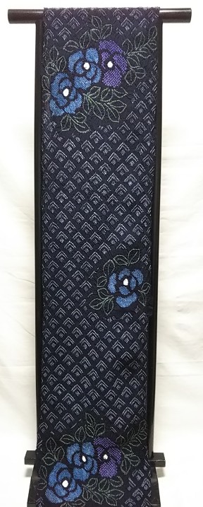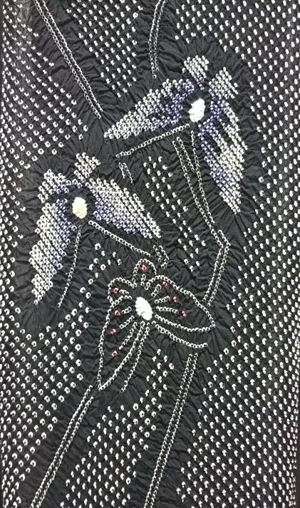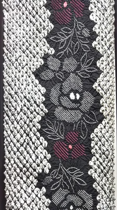 黒地に、絞りがキリリと。縦にバラの花の柄がとてもオシャレです。